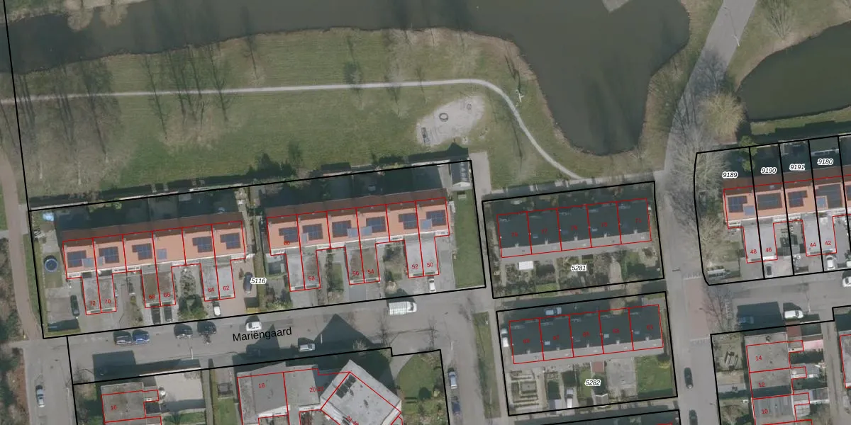 Het perceel waarop Mariëngaard 50 staat heeft een oppervlakte van 3150 m². Dit is een zeer groot perceel. De perceeloppervlakte wordt geregistreerd door het Kadaster. Gedetailleerde informatie over de maten van dit perceel kunt u vinden in het rapport Kadastrale kaart met maatvoering van Mariëngaard 50.