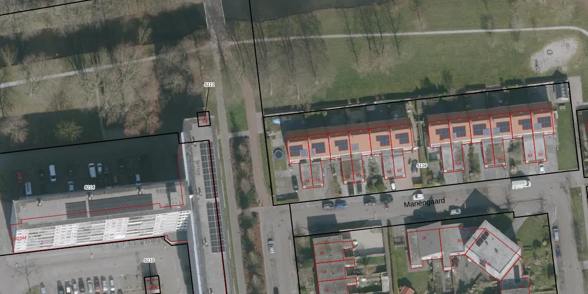 Het perceel waarop Mariëngaard 72 staat heeft een oppervlakte van 3150 m². Dit is een zeer groot perceel. De perceeloppervlakte wordt geregistreerd door het Kadaster. Gedetailleerde informatie over de maten van dit perceel kunt u vinden in het rapport Kadastrale kaart met maatvoering van Mariëngaard 72.