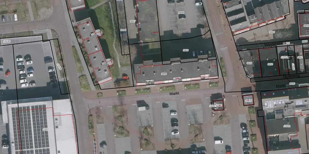 Het perceel waarop Markt 36 staat heeft een oppervlakte van 1008 m². Dit is een zeer groot perceel. De perceeloppervlakte wordt geregistreerd door het Kadaster. Gedetailleerde informatie over de maten van dit perceel kunt u vinden in het rapport Kadastrale kaart met maatvoering van Markt 36.