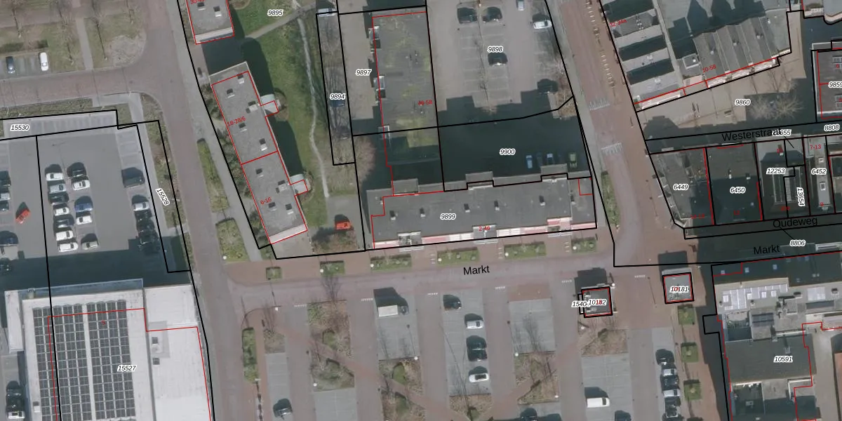 Het perceel waarop Markt 42 staat heeft een oppervlakte van 1008 m². Dit is een zeer groot perceel. De perceeloppervlakte wordt geregistreerd door het Kadaster. Gedetailleerde informatie over de maten van dit perceel kunt u vinden in het rapport Kadastrale kaart met maatvoering van Markt 42.