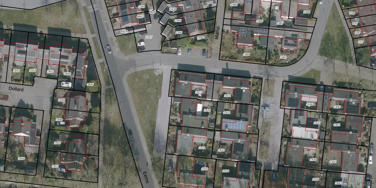 Gebruik de zoekbalk of klik op een perceel voor informatie over de adressen binnen dit perceel.