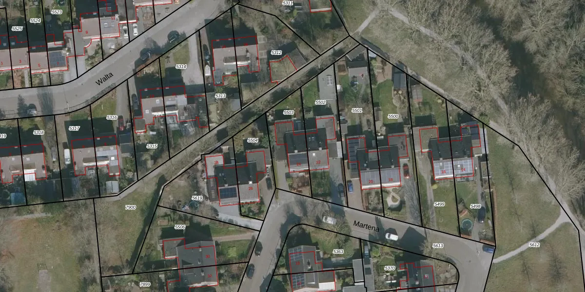 Het perceel waarop Martena 24 staat heeft een oppervlakte van 400 m². Dit is een groot perceel. De perceeloppervlakte wordt geregistreerd door het Kadaster. Gedetailleerde informatie over de maten van dit perceel kunt u vinden in het rapport Kadastrale kaart met maatvoering van Martena 24.