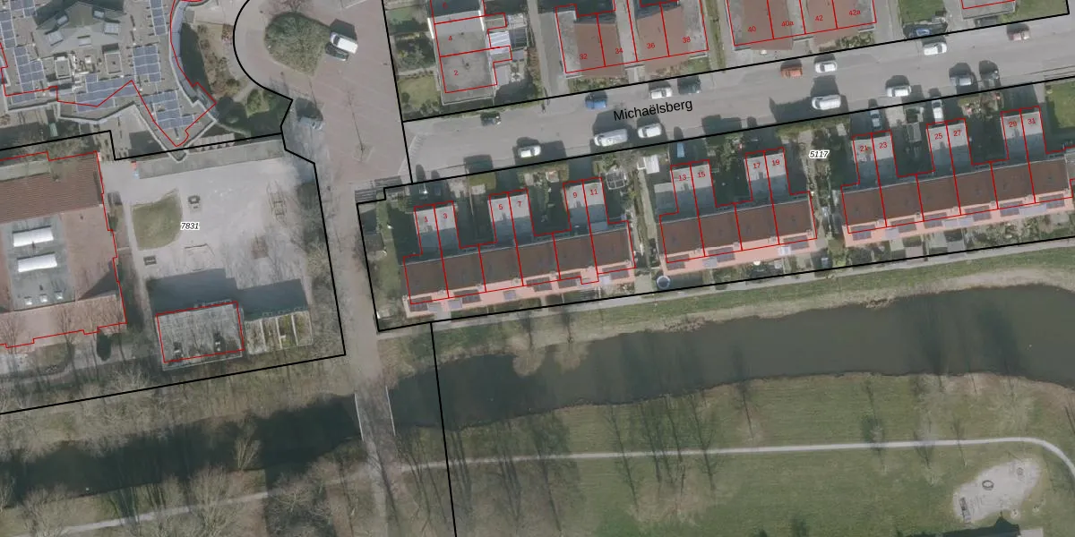 Het perceel waarop Michaëlsberg 7 staat heeft een oppervlakte van 3930 m². Dit is een zeer groot perceel. De perceeloppervlakte wordt geregistreerd door het Kadaster. Gedetailleerde informatie over de maten van dit perceel kunt u vinden in het rapport Kadastrale kaart met maatvoering van Michaëlsberg 7.