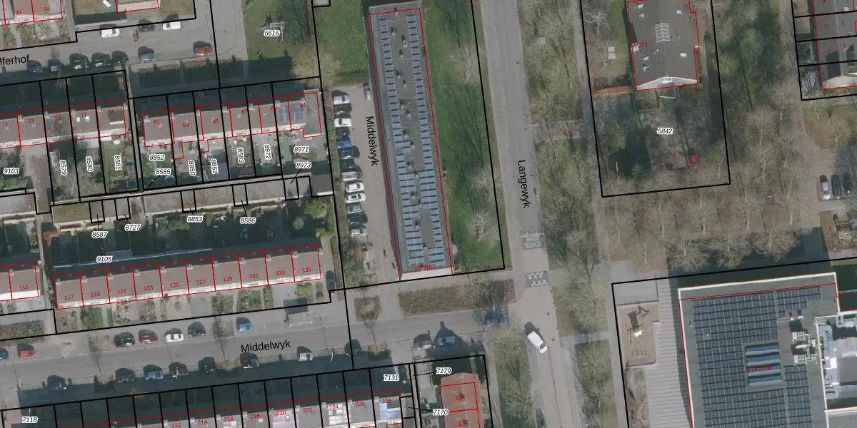 Het perceel waarop Middelwyk 155 staat heeft een oppervlakte van 2691 m². Dit is een zeer groot perceel. De perceeloppervlakte wordt geregistreerd door het Kadaster. Gedetailleerde informatie over de maten van dit perceel kunt u vinden in het rapport Kadastrale kaart met maatvoering van Middelwyk 155.