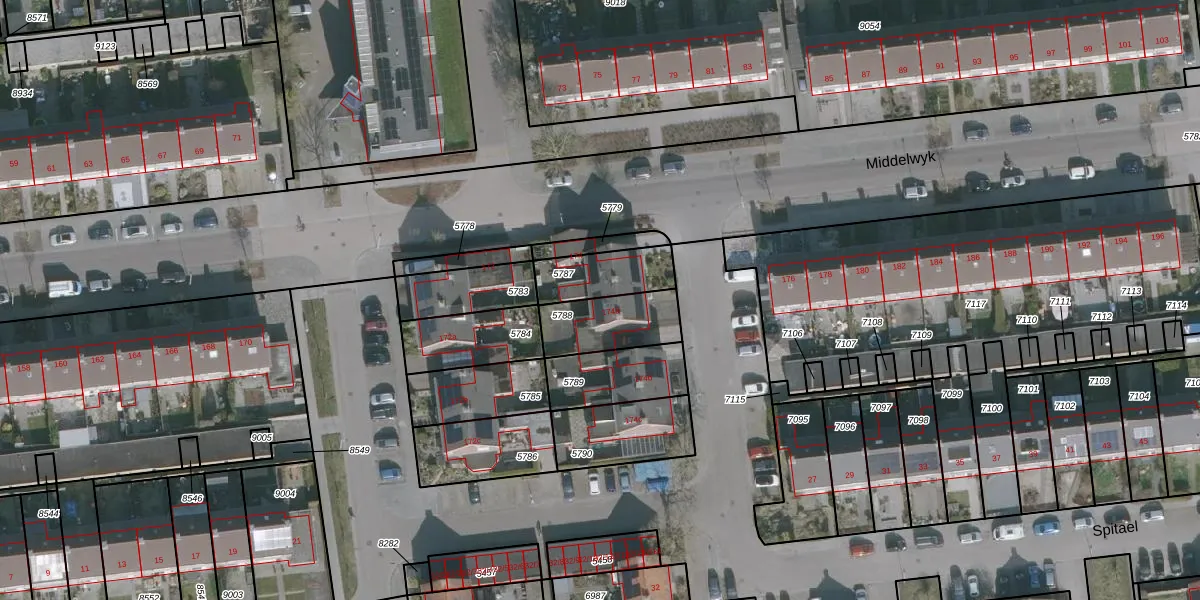 Het perceel waarop Middelwyk 174-a staat heeft een oppervlakte van 206 m². Dit is een middelgroot perceel. De perceeloppervlakte wordt geregistreerd door het Kadaster. Gedetailleerde informatie over de maten van dit perceel kunt u vinden in het rapport Kadastrale kaart met maatvoering van Middelwyk 174-a.