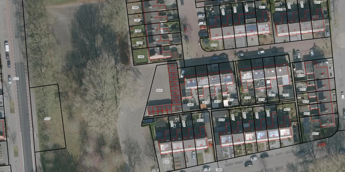 Het adres ligt op het perceel DTN02-B-5592, dat zich in de kadastrale gemeente Drachten bevindt. De gemiddelde perceelgrootte in Drachten is 1805,26 m². Dit perceel is kleiner: de perceeloppervlakte bedraagt 507 m². Het kleinste perceel in de kadastrale gemeente is 0 m² groot. De grootste perceeloppervlakte is 42,8 ha. Op het perceel zijn 15 adressen aanwezig. In de Basisregistratie Kadaster (BRK) werden de grenzen van het perceel geregistreerd op 05-08-2004.