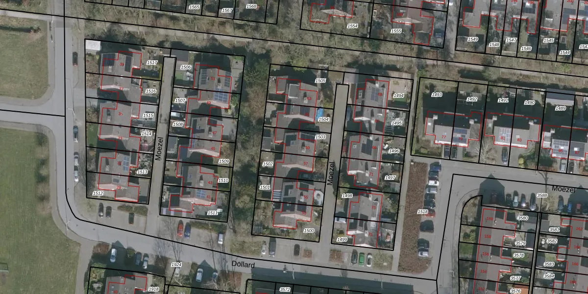 Het perceel waarop Moezel 59 staat heeft een oppervlakte van 194 m². Dit is een middelgroot perceel. De perceeloppervlakte wordt geregistreerd door het Kadaster. Gedetailleerde informatie over de maten van dit perceel kunt u vinden in het rapport Kadastrale kaart met maatvoering van Moezel 59.
