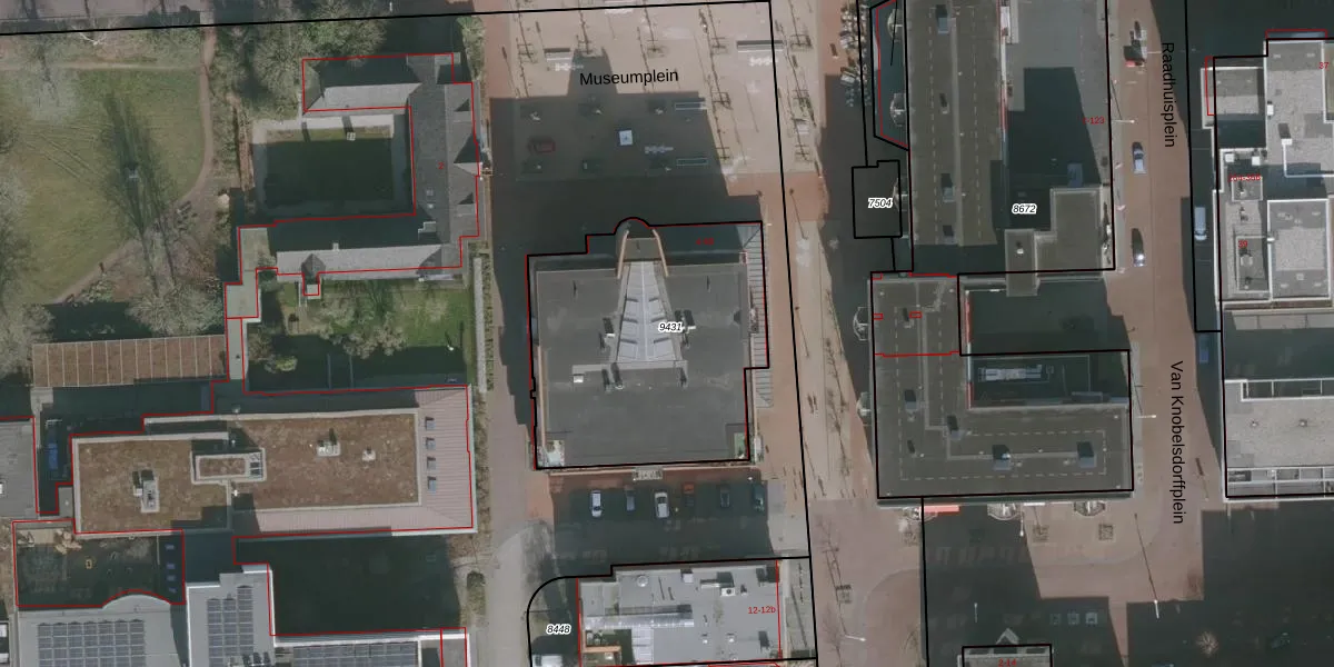 Het perceel waarop Museumplein 42 staat heeft een oppervlakte van 1180 m². Dit is een zeer groot perceel. De perceeloppervlakte wordt geregistreerd door het Kadaster. Gedetailleerde informatie over de maten van dit perceel kunt u vinden in het rapport Kadastrale kaart met maatvoering van Museumplein 42.