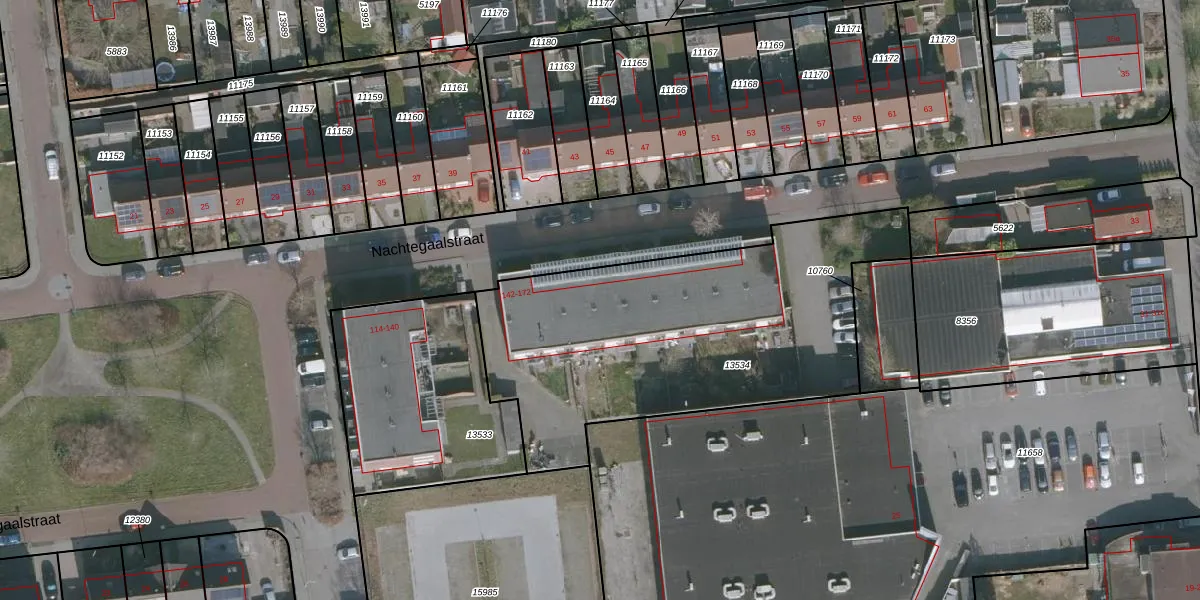 Het perceel waarop Nachtegaalstraat 158 staat heeft een oppervlakte van 1815 m². Dit is een zeer groot perceel. De perceeloppervlakte wordt geregistreerd door het Kadaster. Gedetailleerde informatie over de maten van dit perceel kunt u vinden in het rapport Kadastrale kaart met maatvoering van Nachtegaalstraat 158.