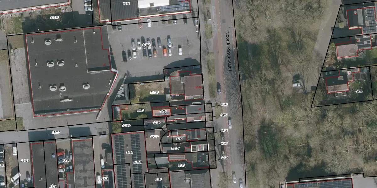 Het perceel waarop Noorderdwarsvaart 19 staat heeft een oppervlakte van 616 m². Dit is een groot perceel. De perceeloppervlakte wordt geregistreerd door het Kadaster. Gedetailleerde informatie over de maten van dit perceel kunt u vinden in het rapport Kadastrale kaart met maatvoering van Noorderdwarsvaart 19.