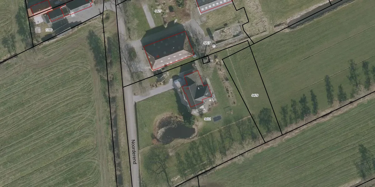 Het perceel waarop Noorderend 52 staat heeft een oppervlakte van 4682 m². Dit is een zeer groot perceel. De perceeloppervlakte wordt geregistreerd door het Kadaster. Gedetailleerde informatie over de maten van dit perceel kunt u vinden in het rapport Kadastrale kaart met maatvoering van Noorderend 52.