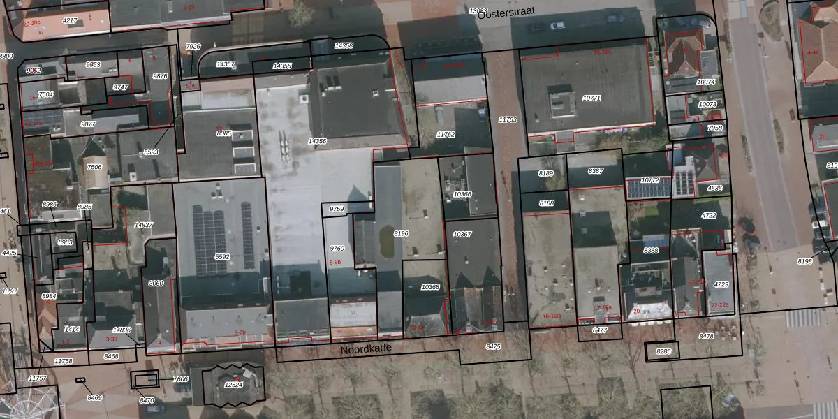 Het perceel waarop Noordkade 10 staat heeft een oppervlakte van 577 m². Dit is een groot perceel. De perceeloppervlakte wordt geregistreerd door het Kadaster. Gedetailleerde informatie over de maten van dit perceel kunt u vinden in het rapport Kadastrale kaart met maatvoering van Noordkade 10.