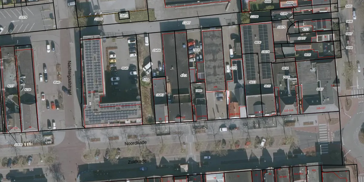 Het perceel waarop Noordkade 100 staat heeft een oppervlakte van 340 m². Dit is een groot perceel. De perceeloppervlakte wordt geregistreerd door het Kadaster. Gedetailleerde informatie over de maten van dit perceel kunt u vinden in het rapport Kadastrale kaart met maatvoering van Noordkade 100.