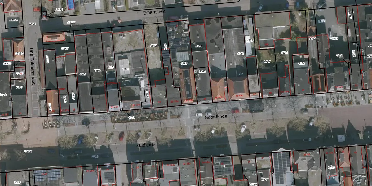 Het perceel waarop Noordkade 37 staat heeft een oppervlakte van 495 m². Dit is een groot perceel. De perceeloppervlakte wordt geregistreerd door het Kadaster. Gedetailleerde informatie over de maten van dit perceel kunt u vinden in het rapport Kadastrale kaart met maatvoering van Noordkade 37.