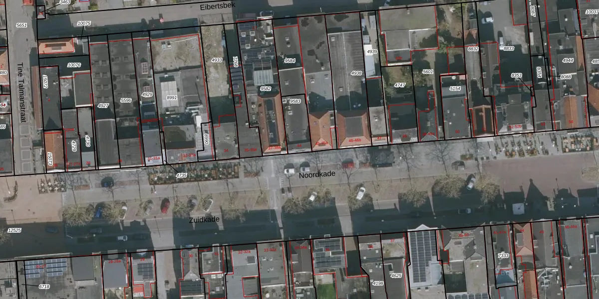 Het perceel waarop Noordkade 44 staat heeft een oppervlakte van 157 m². Dit is een middelgroot perceel. De perceeloppervlakte wordt geregistreerd door het Kadaster. Gedetailleerde informatie over de maten van dit perceel kunt u vinden in het rapport Kadastrale kaart met maatvoering van Noordkade 44.