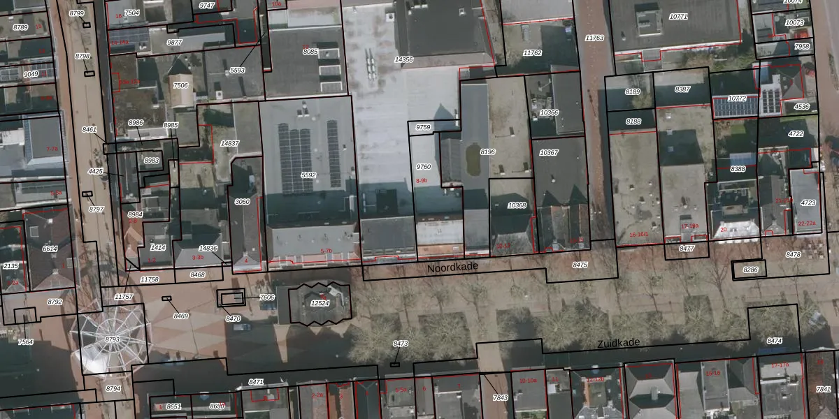 Het perceel waarop Noordkade 9-a staat heeft een oppervlakte van 288 m². Dit is een middelgroot perceel. De perceeloppervlakte wordt geregistreerd door het Kadaster. Gedetailleerde informatie over de maten van dit perceel kunt u vinden in het rapport Kadastrale kaart met maatvoering van Noordkade 9-a.