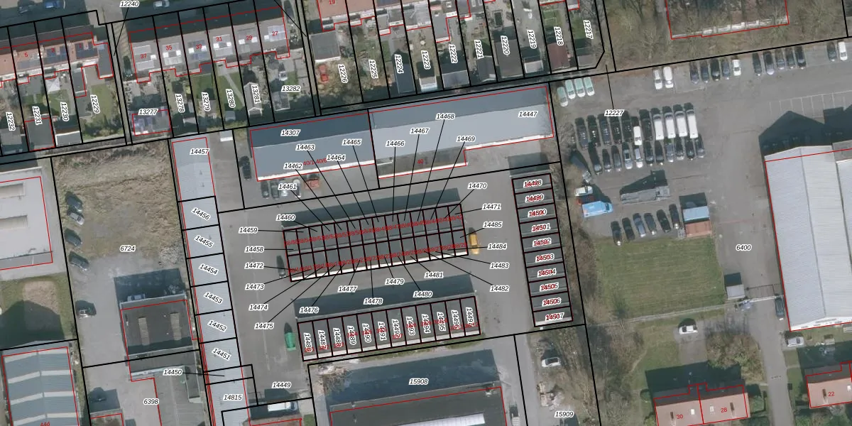 Het adres is gelegen op perceel 14469 in de sectie A en de kadastrale gemeente Drachten. De kadastrale aanduiding is aldus DTN02-A-14469. Het perceel is kleiner dan gemiddeld in Drachten. Het perceel is 18 m² groot, terwijl het gemiddelde ligt op 1805,35 m². Het kleinste perceel in de kadastrale gemeente is 0 m² groot. De grootste perceeloppervlakte is 42,8 ha. Op het perceel bevinden zich geen andere adressen. In de Basisregistratie Kadaster (BRK) werden de grenzen van het perceel geregistreerd op 19-02-2009.