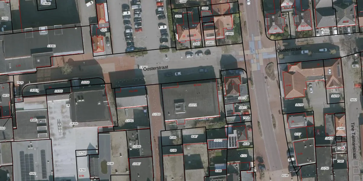 Het perceel waarop Oosterstraat 16-a staat heeft een oppervlakte van 895 m². Dit is een groot perceel. De perceeloppervlakte wordt geregistreerd door het Kadaster. Gedetailleerde informatie over de maten van dit perceel kunt u vinden in het rapport Kadastrale kaart met maatvoering van Oosterstraat 16-a.