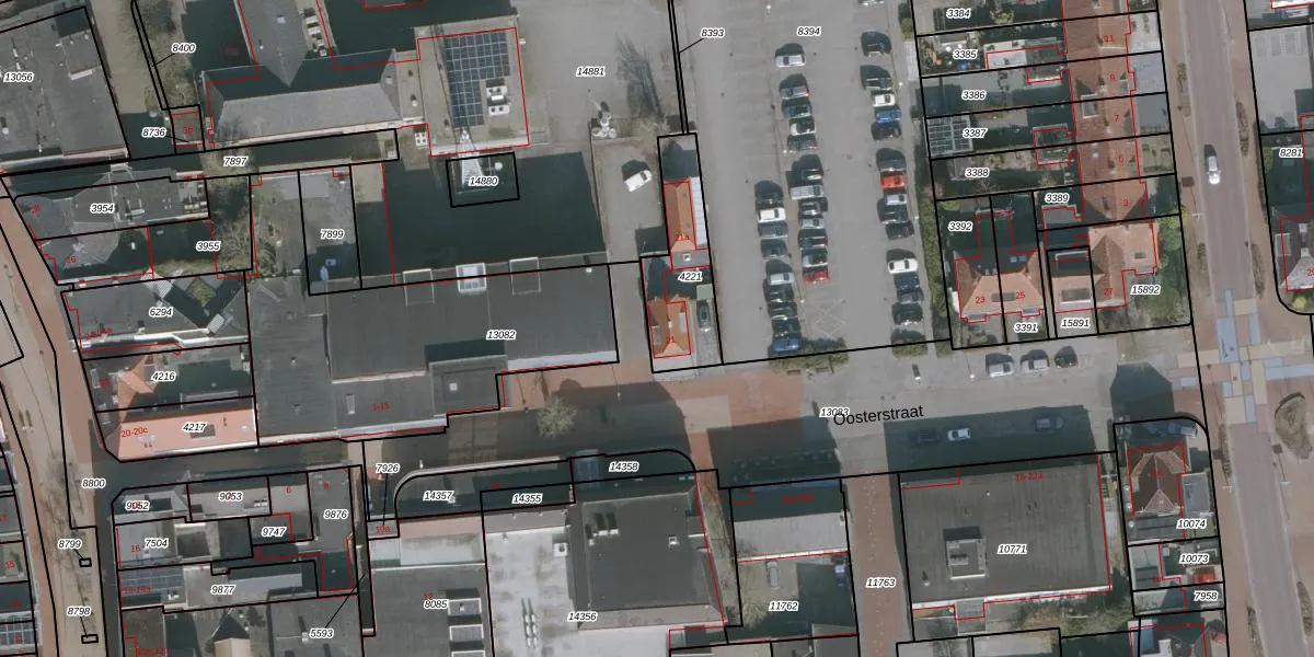 Oosterstraat 21 is gelegen op kadastraal perceel DTN02A4221. Deze kadastrale aanduiding is uniek en wordt gebruikt door het Kadaster om eigendomsrechten en andere zakelijke rechten vast te leggen. Het perceel maakt onderdeel uit van de kadastrale gemeente Drachten.