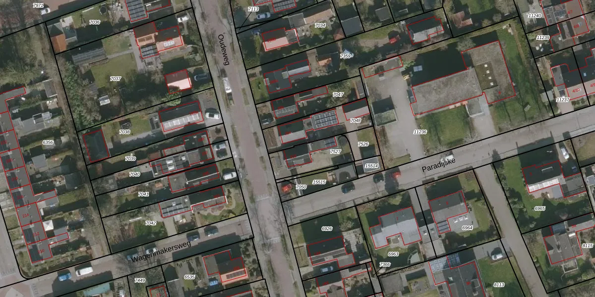 Gebruik de zoekbalk of klik op een perceel voor informatie over de adressen binnen dit perceel.