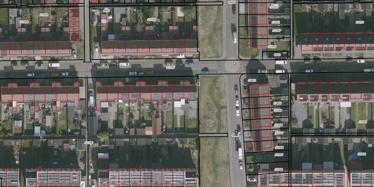 Het perceel waarop Paardepad 32 staat heeft een oppervlakte van 6895 m². Dit is een zeer groot perceel. De perceeloppervlakte wordt geregistreerd door het Kadaster. Gedetailleerde informatie over de maten van dit perceel kunt u vinden in het rapport Kadastrale kaart met maatvoering van Paardepad 32.