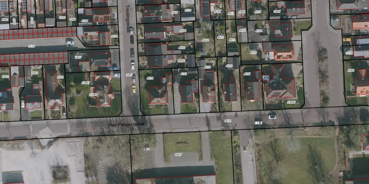 Het perceel waarop Pier Panderstraat 16 staat heeft een oppervlakte van 345 m². Dit is een groot perceel. De perceeloppervlakte wordt geregistreerd door het Kadaster. Gedetailleerde informatie over de maten van dit perceel kunt u vinden in het rapport Kadastrale kaart met maatvoering van Pier Panderstraat 16.