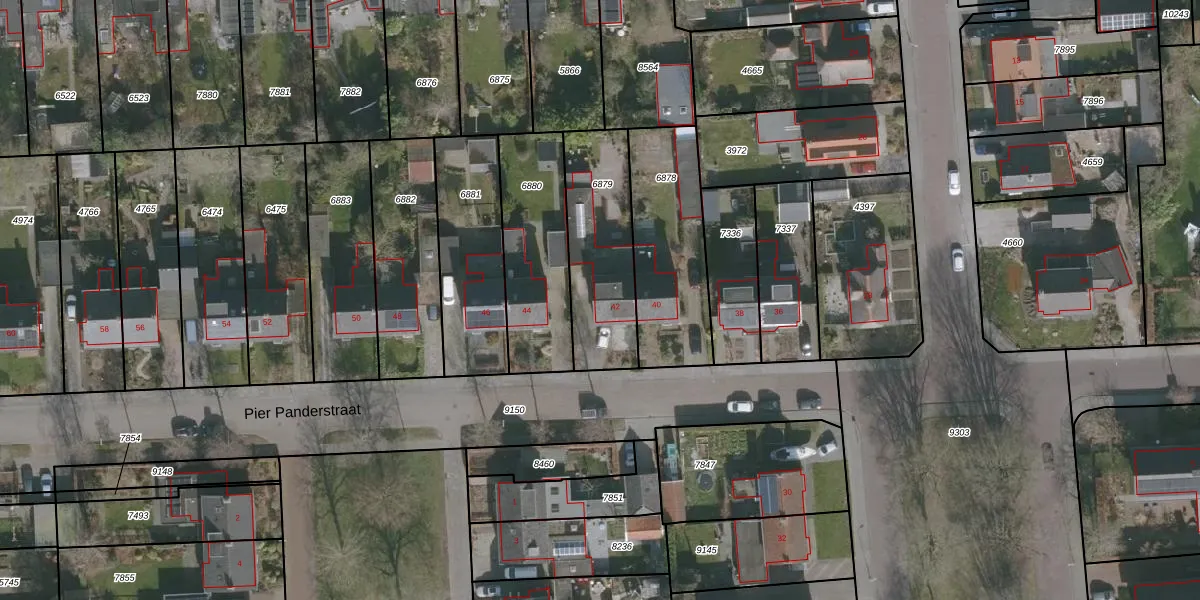 Het perceel waarop Pier Panderstraat 42 staat heeft een oppervlakte van 433 m². Dit is een groot perceel. De perceeloppervlakte wordt geregistreerd door het Kadaster. Gedetailleerde informatie over de maten van dit perceel kunt u vinden in het rapport Kadastrale kaart met maatvoering van Pier Panderstraat 42.