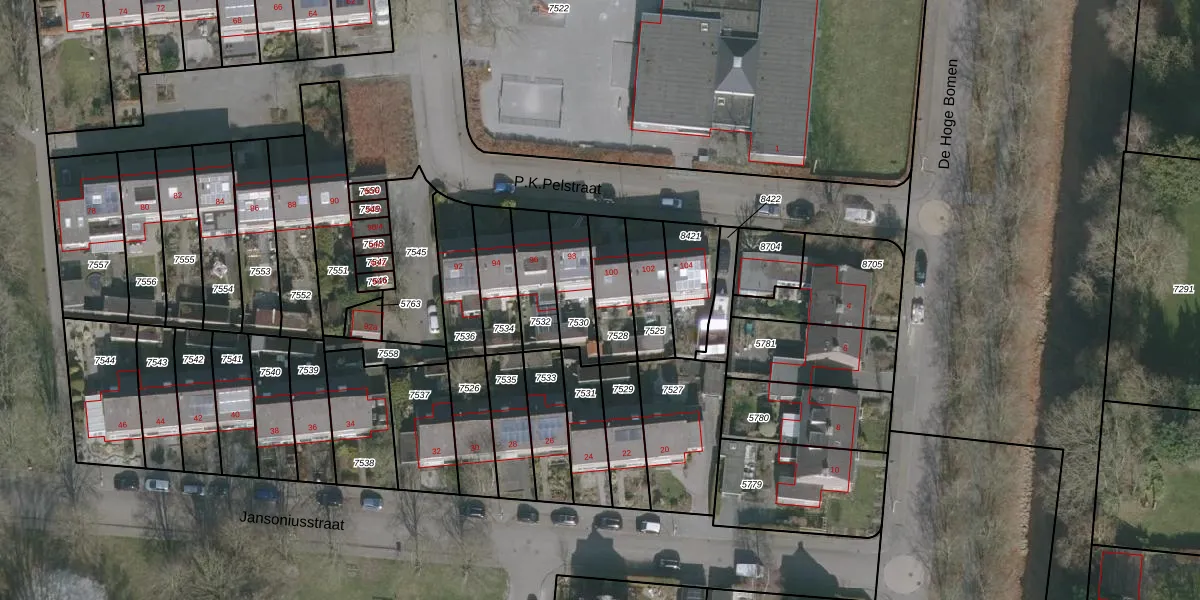 Het perceel waarop P.K.Pelstraat 100 staat heeft een oppervlakte van 155 m². Dit is een middelgroot perceel. De perceeloppervlakte wordt geregistreerd door het Kadaster. Gedetailleerde informatie over de maten van dit perceel kunt u vinden in het rapport Kadastrale kaart met maatvoering van P.K.Pelstraat 100.