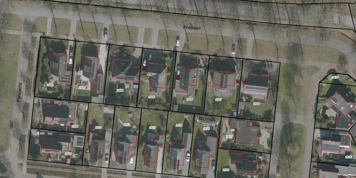 Het perceel waarop Postlaan 24 staat heeft een oppervlakte van 634 m². Dit is een groot perceel. De perceeloppervlakte wordt geregistreerd door het Kadaster. Gedetailleerde informatie over de maten van dit perceel kunt u vinden in het rapport Kadastrale kaart met maatvoering van Postlaan 24.