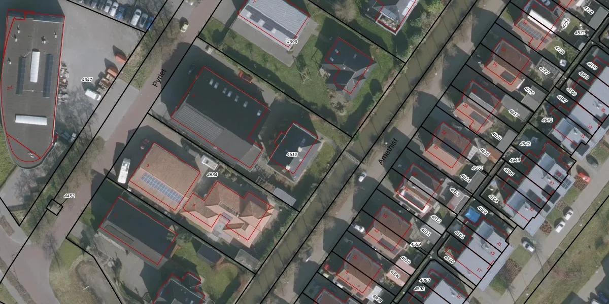 Het perceel waarop Pyriet 6 staat heeft een oppervlakte van 1810 m². Dit is een zeer groot perceel. De perceeloppervlakte wordt geregistreerd door het Kadaster. Gedetailleerde informatie over de maten van dit perceel kunt u vinden in het rapport Kadastrale kaart met maatvoering van Pyriet 6.
