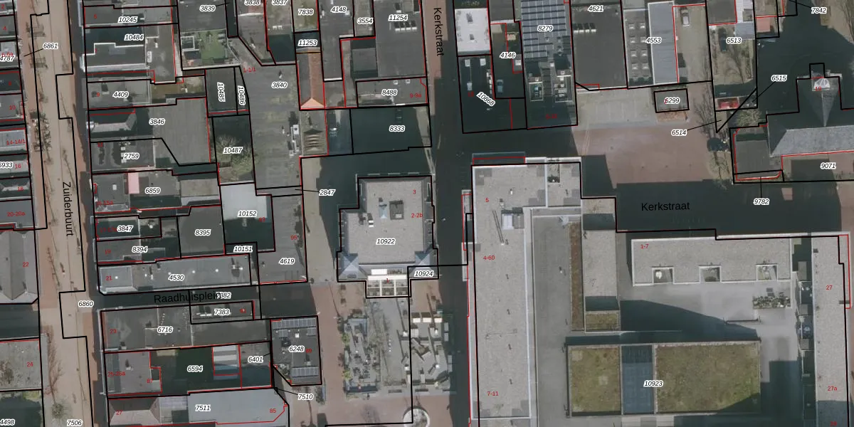 Het perceel waarop Raadhuisplein 2-b staat heeft een oppervlakte van 524 m². Dit is een groot perceel. De perceeloppervlakte wordt geregistreerd door het Kadaster. Gedetailleerde informatie over de maten van dit perceel kunt u vinden in het rapport Kadastrale kaart met maatvoering van Raadhuisplein 2-b.