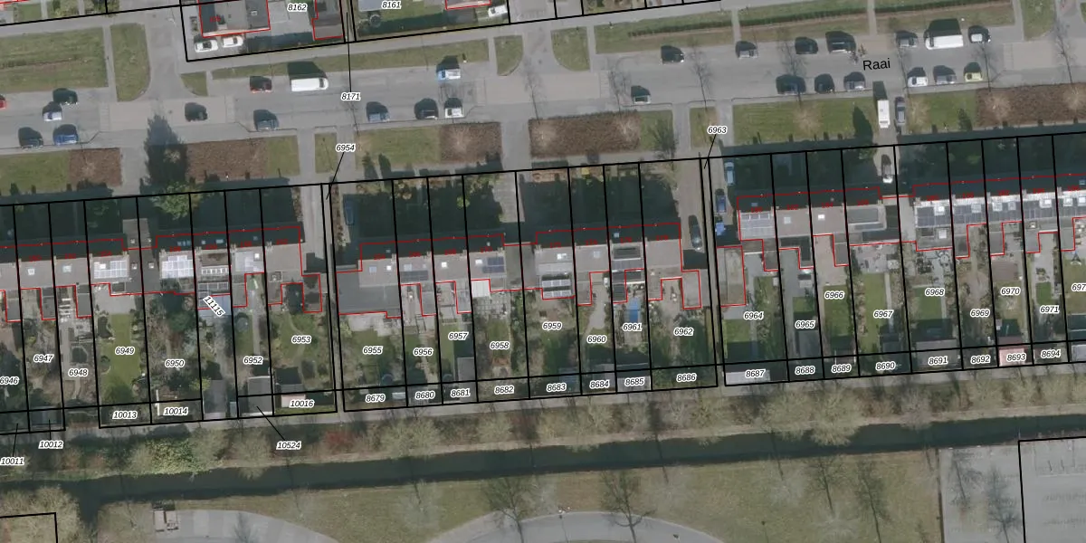 Het perceel waarop Raai 172 staat heeft een oppervlakte van 372 m². Dit is een groot perceel. De perceeloppervlakte wordt geregistreerd door het Kadaster. Gedetailleerde informatie over de maten van dit perceel kunt u vinden in het rapport Kadastrale kaart met maatvoering van Raai 172.