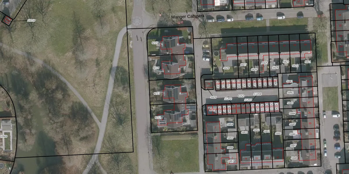 Het perceel waarop het adres ligt is DTN02-C-8213. De afkorting 'DTN02' staat voor kadastrale gemeente Drachten. Het perceel is kleiner dan gemiddeld in Drachten. Het perceel is 373 m² groot, terwijl het gemiddelde ligt op 1805,26 m². De grootste perceeloppervlakte in de kadastrale gemeente is 42,8 ha. De kleinste oppervlakte bedraagt 0 m². Er zijn geen andere adressen aanwezig op het perceel. De laatste wijziging in het de Basisregistratie Kadaster (BRK) was op 05-04-2005.