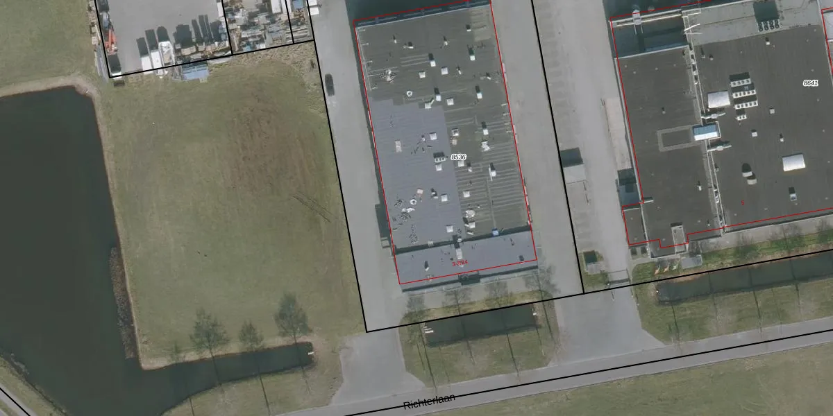 Het perceel waarop Richterlaan 3-3 staat heeft een oppervlakte van 4380 m². Dit is een zeer groot perceel. De perceeloppervlakte wordt geregistreerd door het Kadaster. Gedetailleerde informatie over de maten van dit perceel kunt u vinden in het rapport Kadastrale kaart met maatvoering van Richterlaan 3-3.