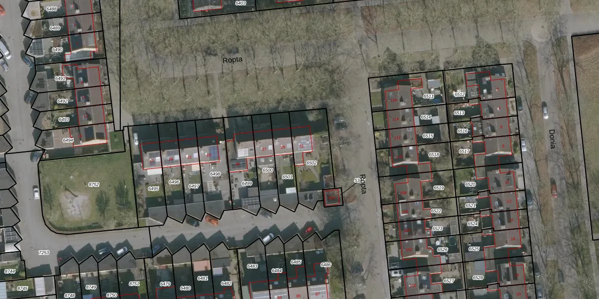 Het perceel waarop Ropta 31 staat heeft een oppervlakte van 380 m². Dit is een groot perceel. De perceeloppervlakte wordt geregistreerd door het Kadaster. Gedetailleerde informatie over de maten van dit perceel kunt u vinden in het rapport Kadastrale kaart met maatvoering van Ropta 31.