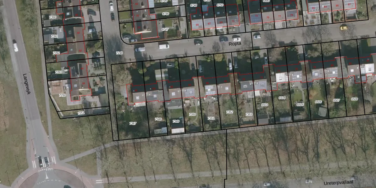 Het perceel waarop Ropta 64 staat heeft een oppervlakte van 386 m². Dit is een groot perceel. De perceeloppervlakte wordt geregistreerd door het Kadaster. Gedetailleerde informatie over de maten van dit perceel kunt u vinden in het rapport Kadastrale kaart met maatvoering van Ropta 64.