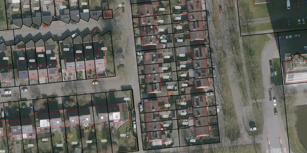 Het perceel waarop Ropta 96 staat heeft een oppervlakte van 157 m². Dit is een middelgroot perceel. De perceeloppervlakte wordt geregistreerd door het Kadaster. Gedetailleerde informatie over de maten van dit perceel kunt u vinden in het rapport Kadastrale kaart met maatvoering van Ropta 96.