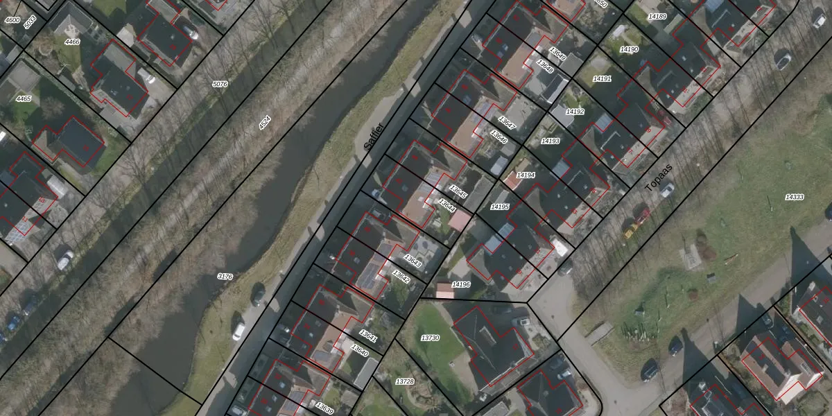 Het perceel waarop Saffier 42 staat heeft een oppervlakte van 268 m². Dit is een middelgroot perceel. De perceeloppervlakte wordt geregistreerd door het Kadaster. Gedetailleerde informatie over de maten van dit perceel kunt u vinden in het rapport Kadastrale kaart met maatvoering van Saffier 42.