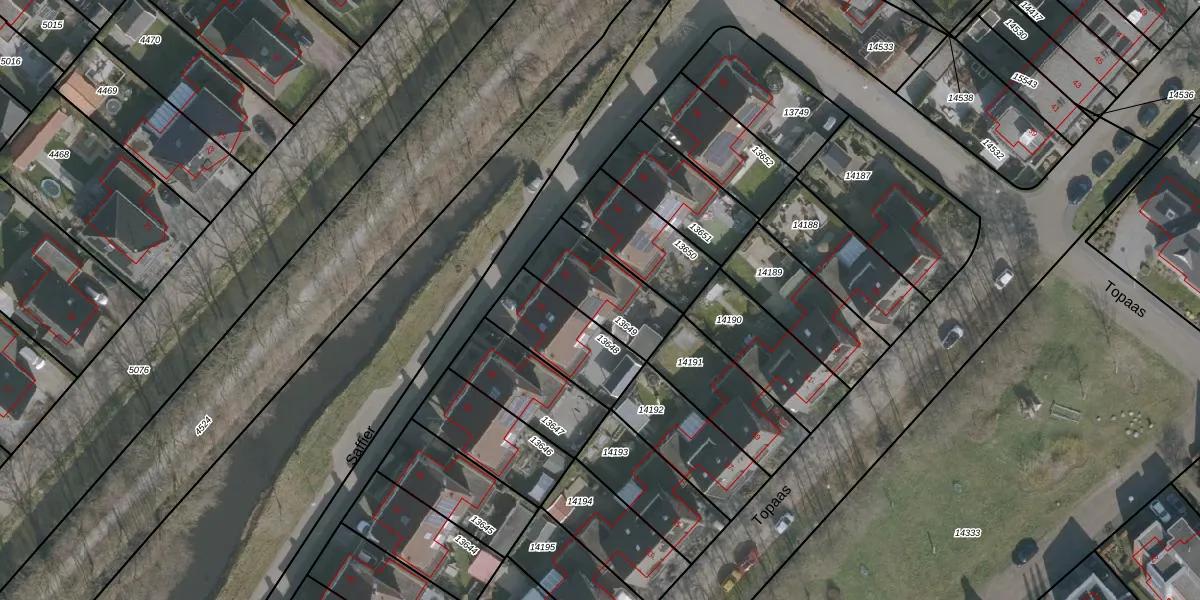 Het perceel waarop Saffier 52 staat heeft een oppervlakte van 267 m². Dit is een middelgroot perceel. De perceeloppervlakte wordt geregistreerd door het Kadaster. Gedetailleerde informatie over de maten van dit perceel kunt u vinden in het rapport Kadastrale kaart met maatvoering van Saffier 52.