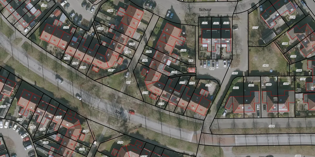 Het perceel waarop Schuur 47 staat heeft een oppervlakte van 360 m². Dit is een groot perceel. De perceeloppervlakte wordt geregistreerd door het Kadaster. Gedetailleerde informatie over de maten van dit perceel kunt u vinden in het rapport Kadastrale kaart met maatvoering van Schuur 47.