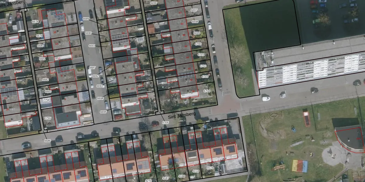 Gebruik de zoekbalk of klik op een perceel voor informatie over de adressen binnen dit perceel.