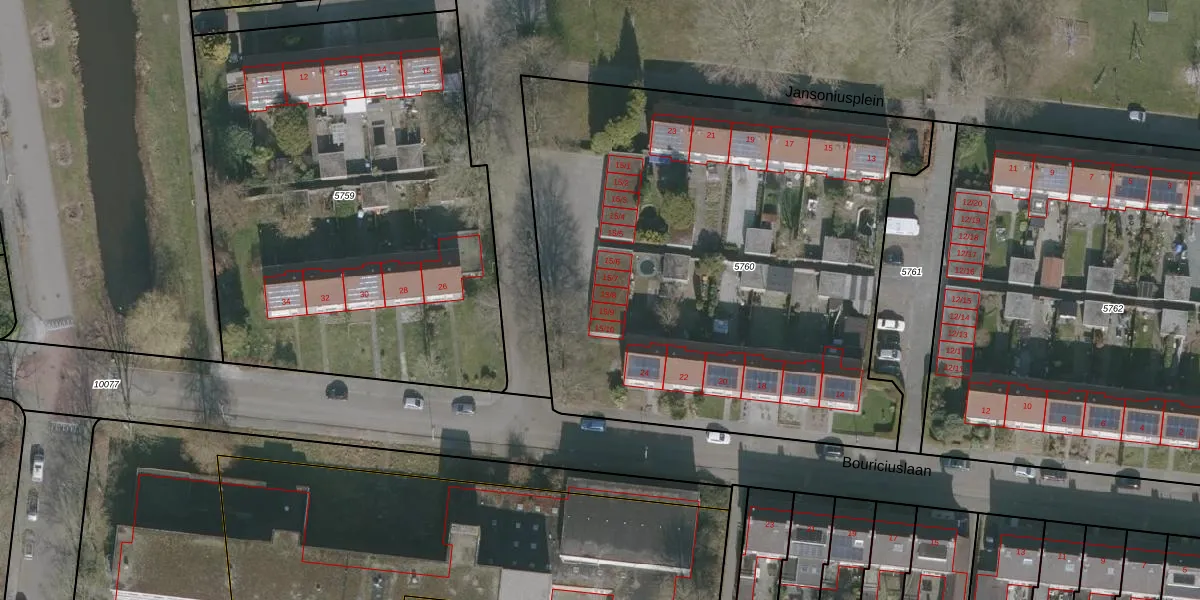 Het perceel waarop het adres ligt is DTN02-C-5760. De afkorting 'DTN02' staat voor kadastrale gemeente Drachten. De gemiddelde perceeloppervlakte in de kadastrale gemeente Drachten is 1805,26 m². Dit perceel is met zijn 3275 m² dus groter dan gemiddeld. De grootste perceeloppervlakte in de kadastrale gemeente is 42,8 ha. De kleinste oppervlakte bedraagt 0 m². Er zijn 22 adressen aanwezig op het perceel. De huidige grenzen van het perceel zijn digitaal in de Basisregistratie Kadaster (BRK) geregistreerd op 26-10-1999.