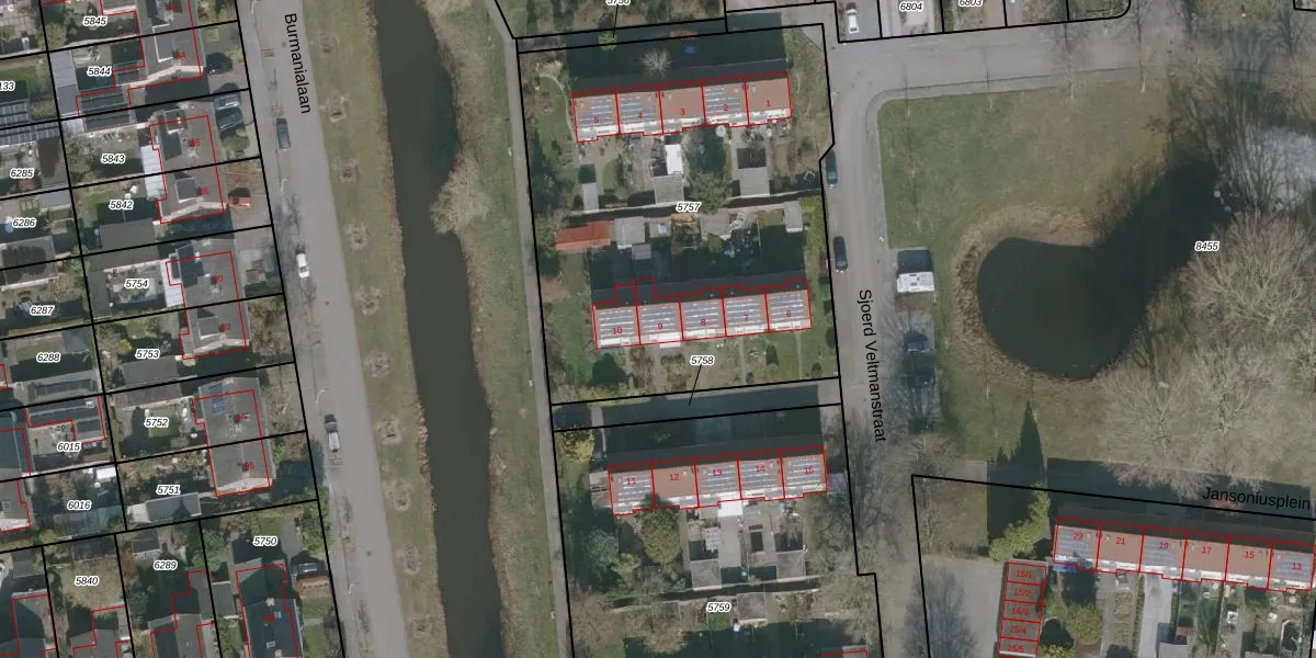 Het perceel waarop Sjoerd Veltmanstraat 9 staat heeft een oppervlakte van 2407 m². Dit is een zeer groot perceel. De perceeloppervlakte wordt geregistreerd door het Kadaster. Gedetailleerde informatie over de maten van dit perceel kunt u vinden in het rapport Kadastrale kaart met maatvoering van Sjoerd Veltmanstraat 9.