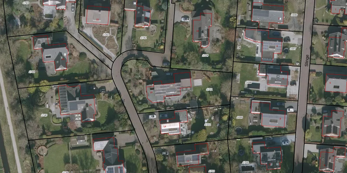 Het perceel waarop Slinge 16 staat heeft een oppervlakte van 1457 m². Dit is een zeer groot perceel. De perceeloppervlakte wordt geregistreerd door het Kadaster. Gedetailleerde informatie over de maten van dit perceel kunt u vinden in het rapport Kadastrale kaart met maatvoering van Slinge 16.