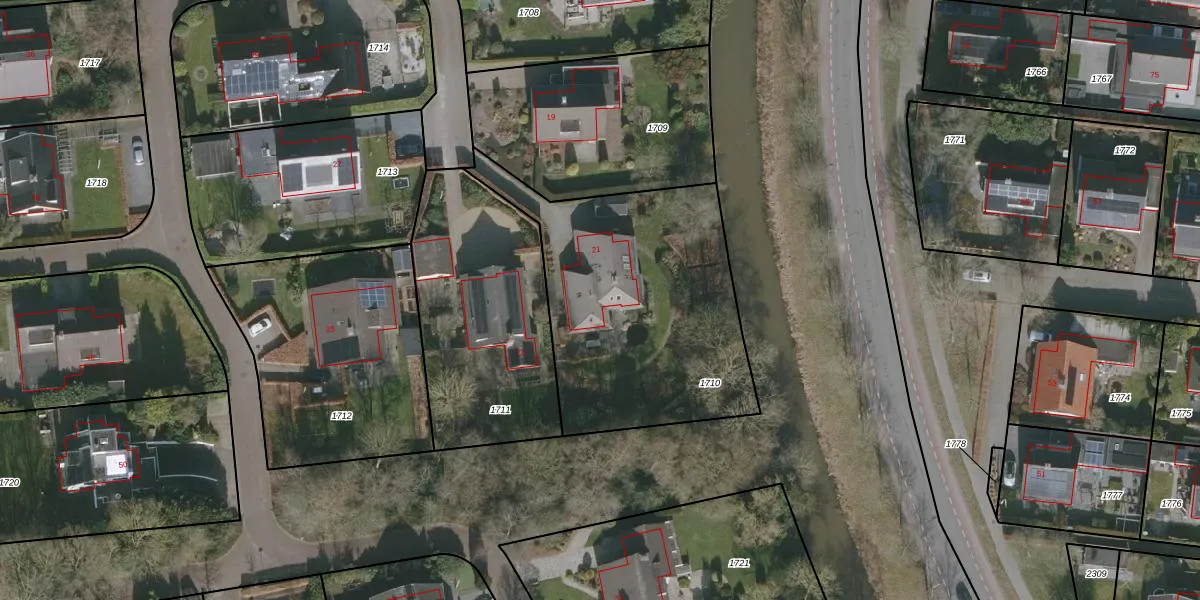 Het perceel waarop het adres ligt is DTN02-D-1710. De afkorting 'DTN02' staat voor kadastrale gemeente Drachten. Het perceel is kleiner dan gemiddeld in Drachten. Het perceel is 1278 m² groot, terwijl het gemiddelde ligt op 1805,26 m². Het grootste perceel in de kadastrale gemeente is 42,8 ha. Het kleinste perceel heeft een oppervlakte van 0 m². Dit is het enige adres dat aanwezig is op het perceel. De huidige grenzen van het perceel zijn digitaal in de Basisregistratie Kadaster (BRK) geregistreerd op 19-11-2008.