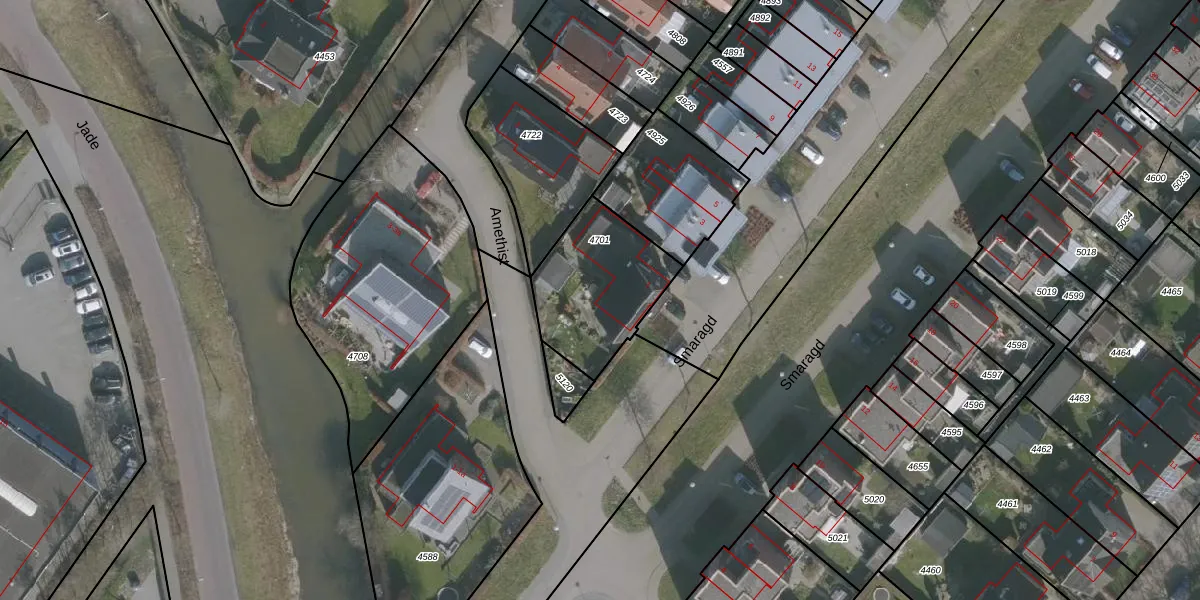 Het perceel waarop Smaragd 1 staat heeft een oppervlakte van 434 m². Dit is een groot perceel. De perceeloppervlakte wordt geregistreerd door het Kadaster. Gedetailleerde informatie over de maten van dit perceel kunt u vinden in het rapport Kadastrale kaart met maatvoering van Smaragd 1.