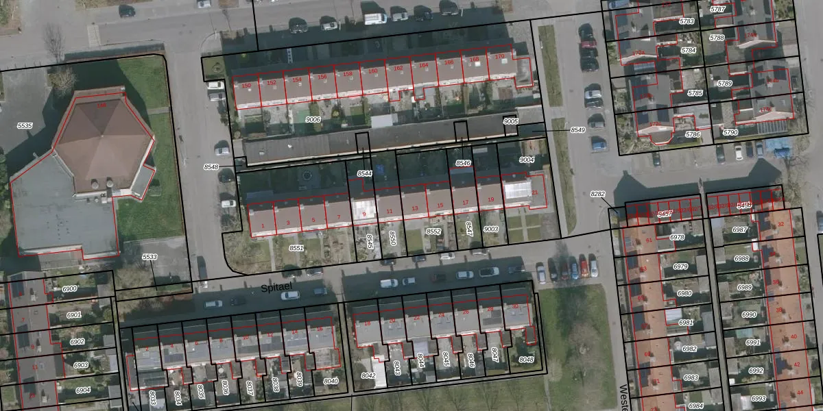 Het perceel waarop Spitael 13 staat heeft een oppervlakte van 306 m². Dit is een groot perceel. De perceeloppervlakte wordt geregistreerd door het Kadaster. Gedetailleerde informatie over de maten van dit perceel kunt u vinden in het rapport Kadastrale kaart met maatvoering van Spitael 13.