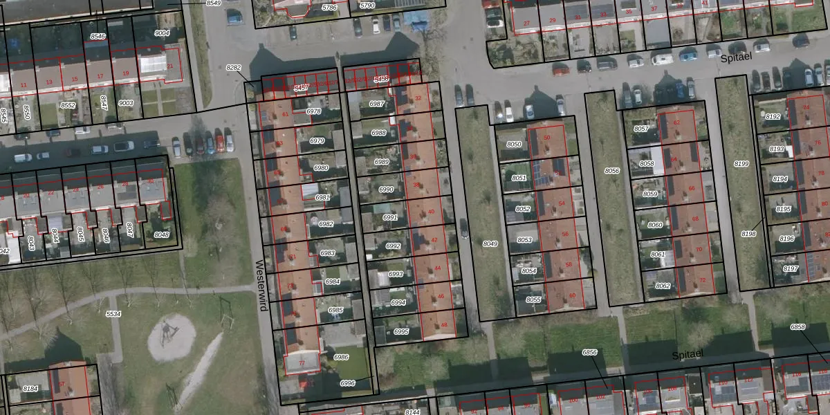 Het perceel waarop Spitael 40 staat heeft een oppervlakte van 154 m². Dit is een middelgroot perceel. De perceeloppervlakte wordt geregistreerd door het Kadaster. Gedetailleerde informatie over de maten van dit perceel kunt u vinden in het rapport Kadastrale kaart met maatvoering van Spitael 40.