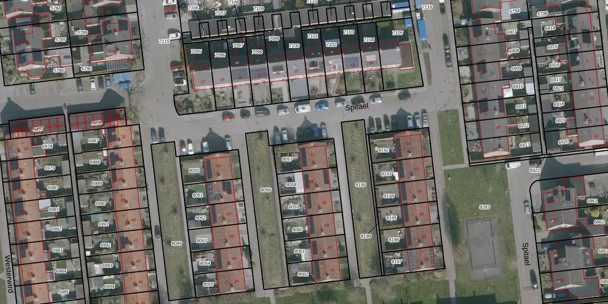 Het perceel waarop Spitael 62 staat heeft een oppervlakte van 190 m². Dit is een middelgroot perceel. De perceeloppervlakte wordt geregistreerd door het Kadaster. Gedetailleerde informatie over de maten van dit perceel kunt u vinden in het rapport Kadastrale kaart met maatvoering van Spitael 62.