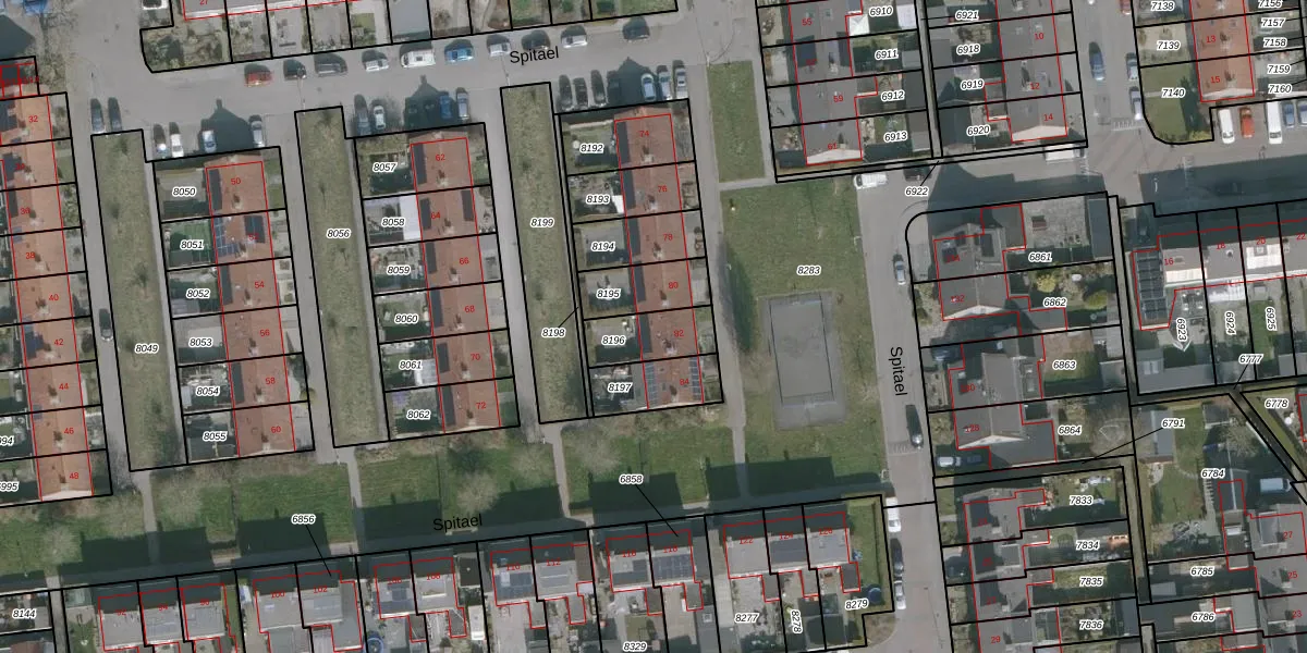 Het perceel waarop Spitael 82 staat heeft een oppervlakte van 147 m². Dit is een middelgroot perceel. De perceeloppervlakte wordt geregistreerd door het Kadaster. Gedetailleerde informatie over de maten van dit perceel kunt u vinden in het rapport Kadastrale kaart met maatvoering van Spitael 82.